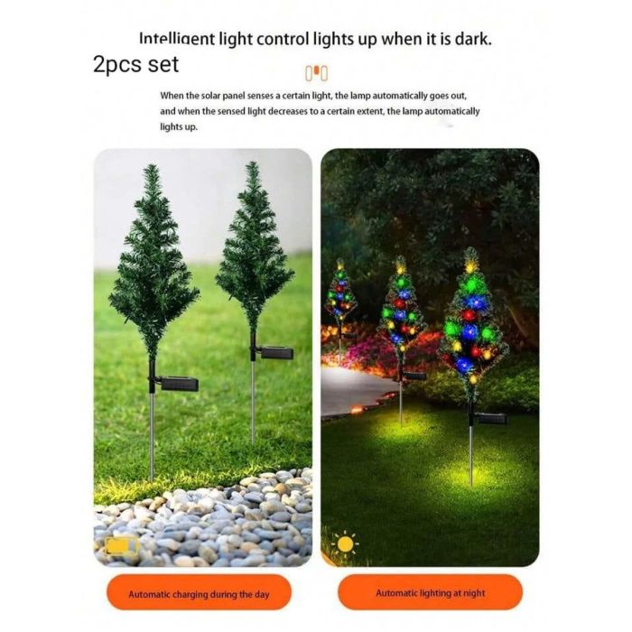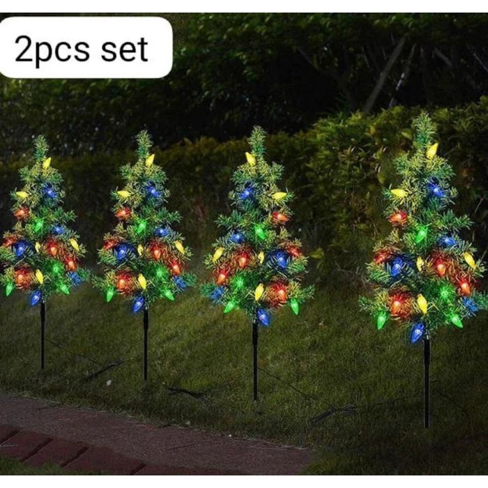 - مجموعة من شجرتين، كل شجرة بها 20 مصباح ليد ملون يعمل بالطاقة الشمسية. تأتي مع أوتاد قوية للديكورات الخارجية