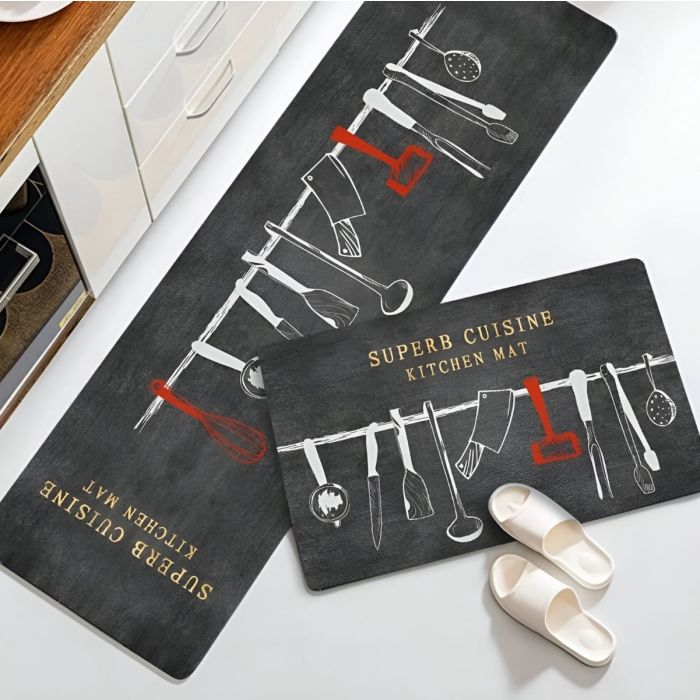 اجعل وقوفك في المطبخ أكثر راحة مع مجموعة السجادات المضادة للتعب. مصممة خصيصًا لتوفير الدعم وتقليل الضغط على قدميك وظهرك أثناء فترات الوقوف الطويلة، مما يجعلها مثالية للطهي أو غسيل الأطباق. تتميز هذه السجادات بكونها غير قابلة للانزلاق، ومقاومة للماء، وسهلة التنظيف. إنها إضافة رائعة لمطبخك، وتجمع بين الأناقة والراحة في آن واحد.
