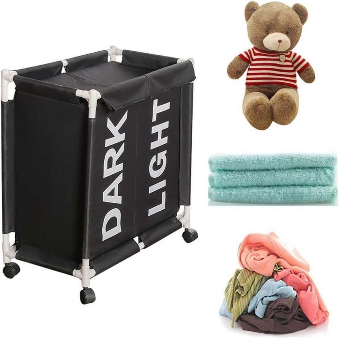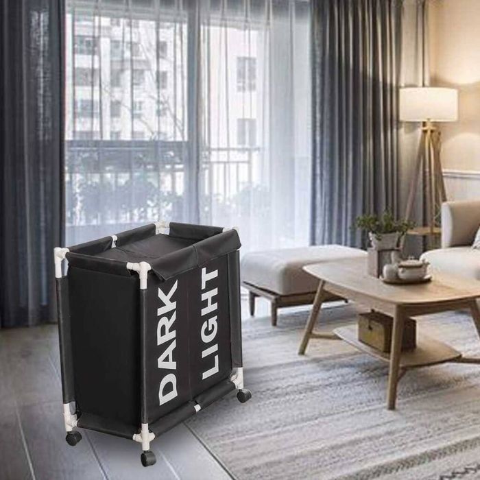هل تعبتم من فوضى الملابس المتراكمة! سلة الغسيل هذه ستغير قواعد اللعبة في منزلك، حيث تجعل فرز الغسيل أمراً يسيراً وأسهل من أي وقت مضى. مع أقسام مزدوجة بمساحة واسعة، يمكنك بسهولة فصل الملابس الفاتحة والداكنة، والملابس النظيفة والمتسخة، أو الملابس الداخلية واليومية. مصنوع من قماش مقاوم للماء مع غطاء يحافظ على ملابسك منتعشة وخالية من الروائح. مصممة بمقابض مريحة وهيكل خفيف الوزن ومتين مع 4 عجلات تجعلها مثالية لحمل الملابس الثقيلة من غرفة إلى أخرى
