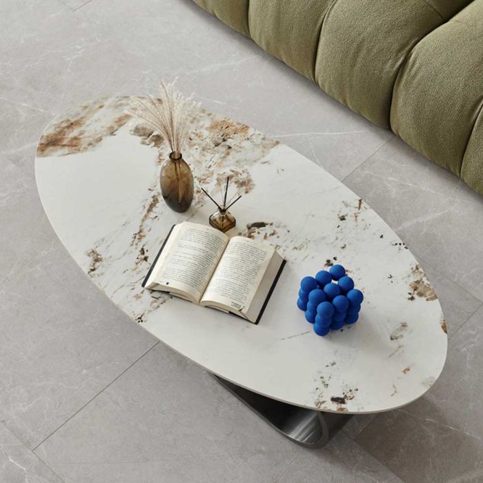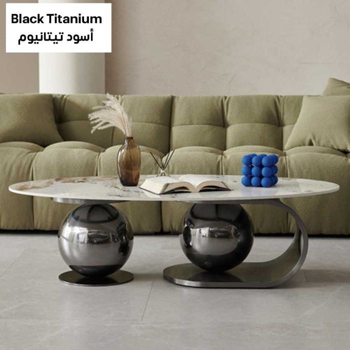 - الخامة: سطح حجر ملبد بلمسة رخامية (Sintered Stone)، هيكل فولاذي