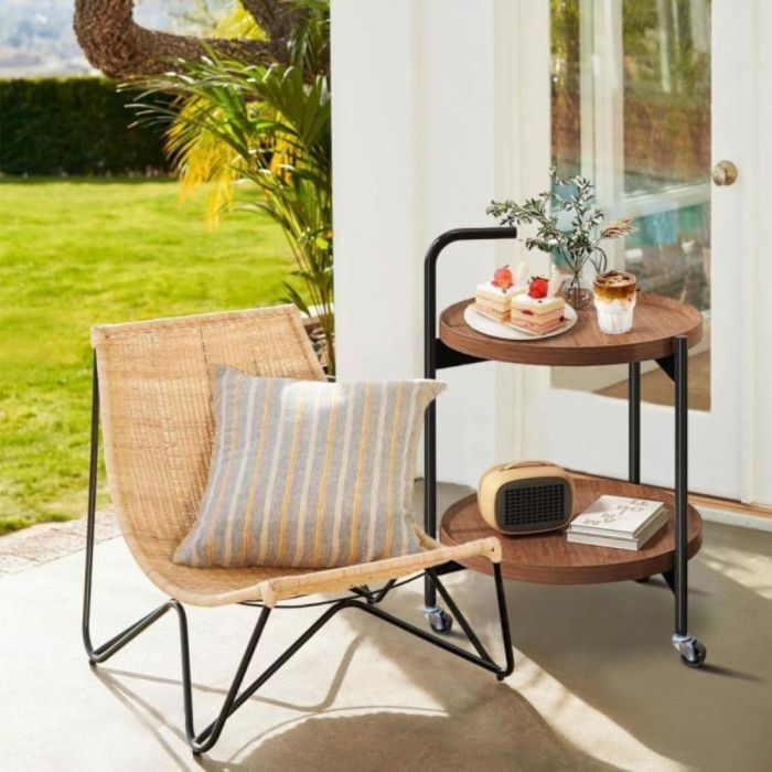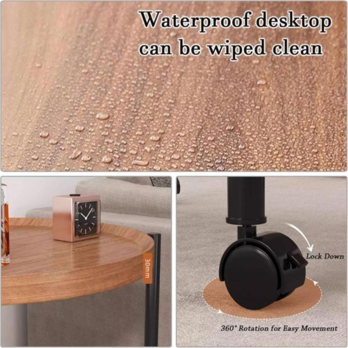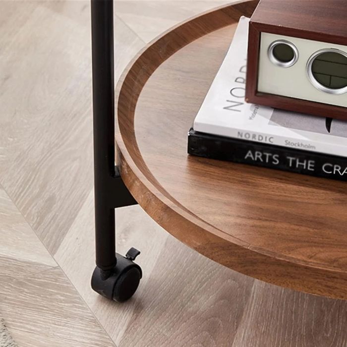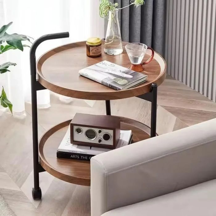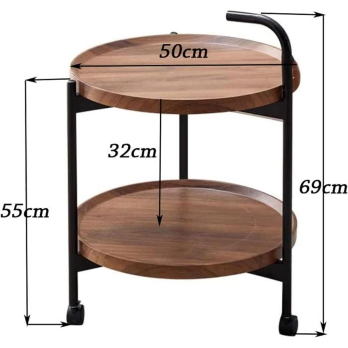 - طاولة جانبية دائرية من طبقتين مع عجلات