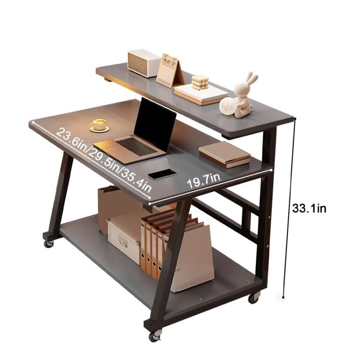 - مكتب خشبي متحرك 2 طبقة مع رف للشاشة