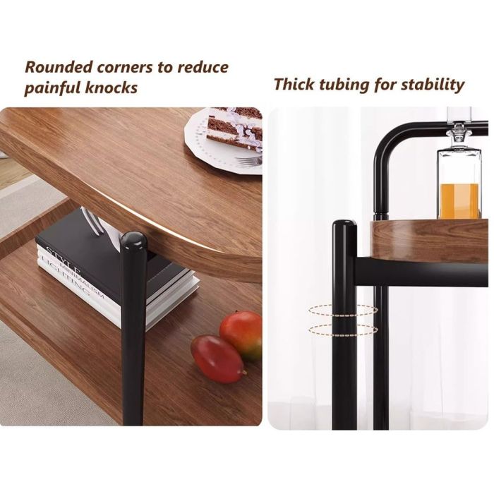 - طاولة جانبية خشبية 2 طبقة مع عجلات 68×40×60 سم