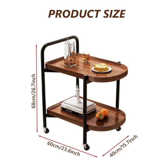 صفقة اليوم هي طاولة جانبية خشبية 2 طبقة مع عجلات 68×40×60 سم