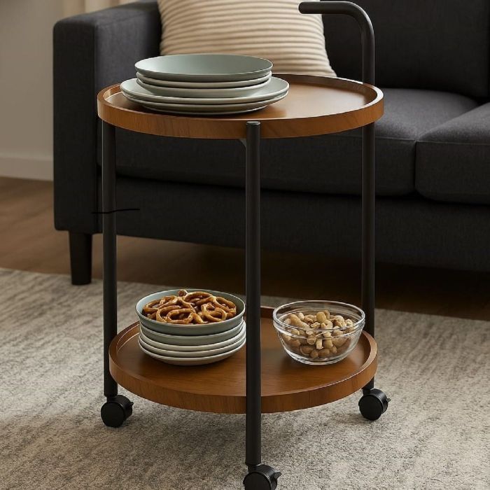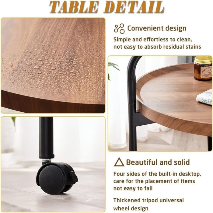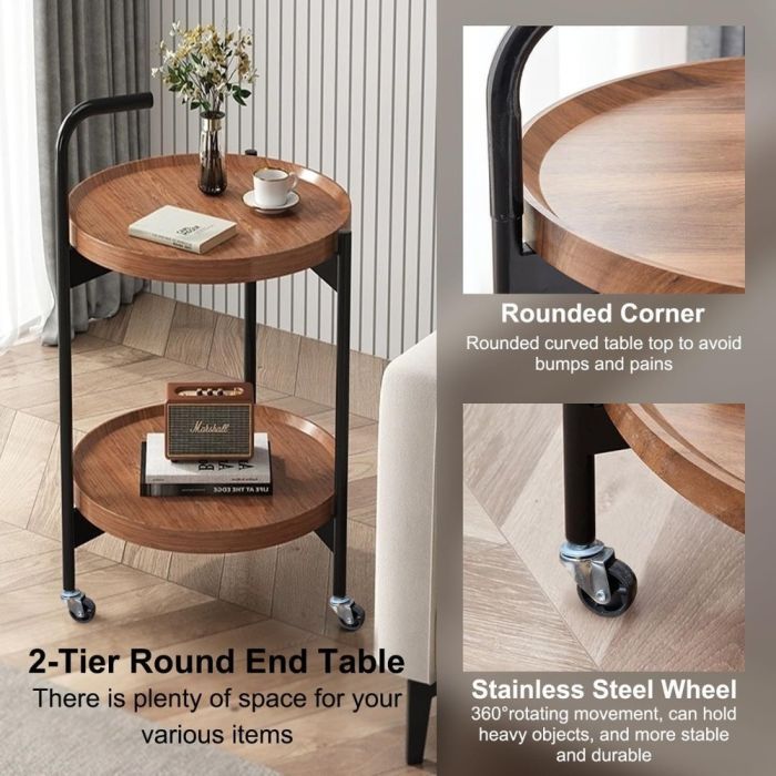 - طاولة جانبية دائرية من طبقتين مع عجلات