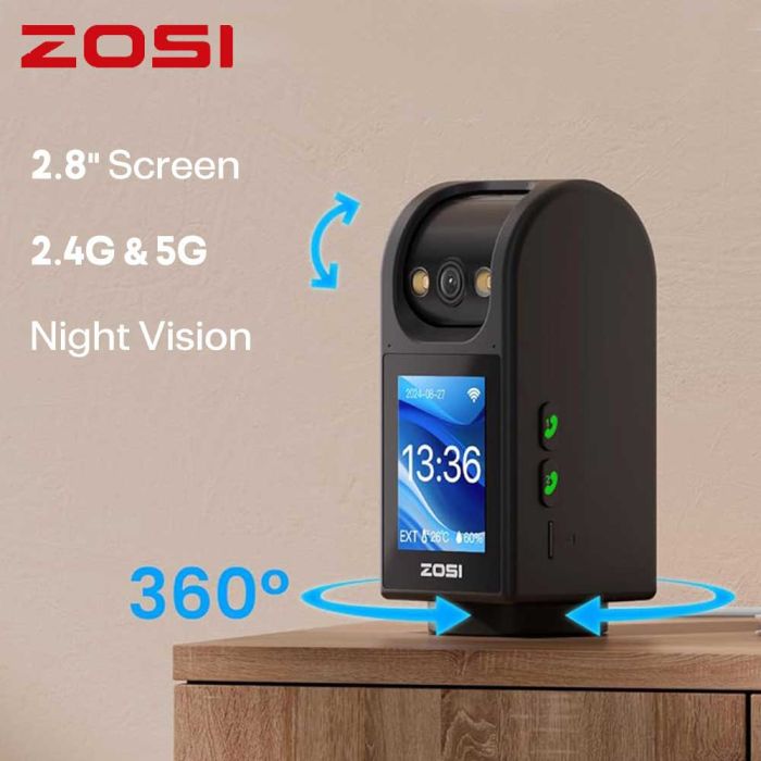 كاميرا مكالمات فيديو ثنائية الاتجاه مع شاشة 2.8 بوصة وخاصية تتبع الحركة من Zosi