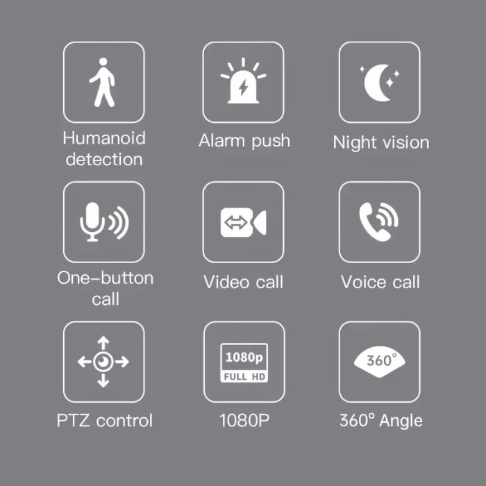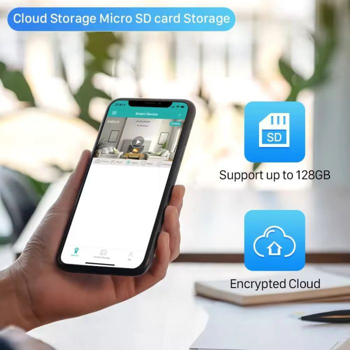 مع دعم التخزين السحابي المشفر، يمكن للمستخدمين حفظ التسجيلات والوصول إليها من أي مكان. كما تكتشف تقنية الذكاء الاصطناعي حركة الإنسان، مما يوفر راحة البال