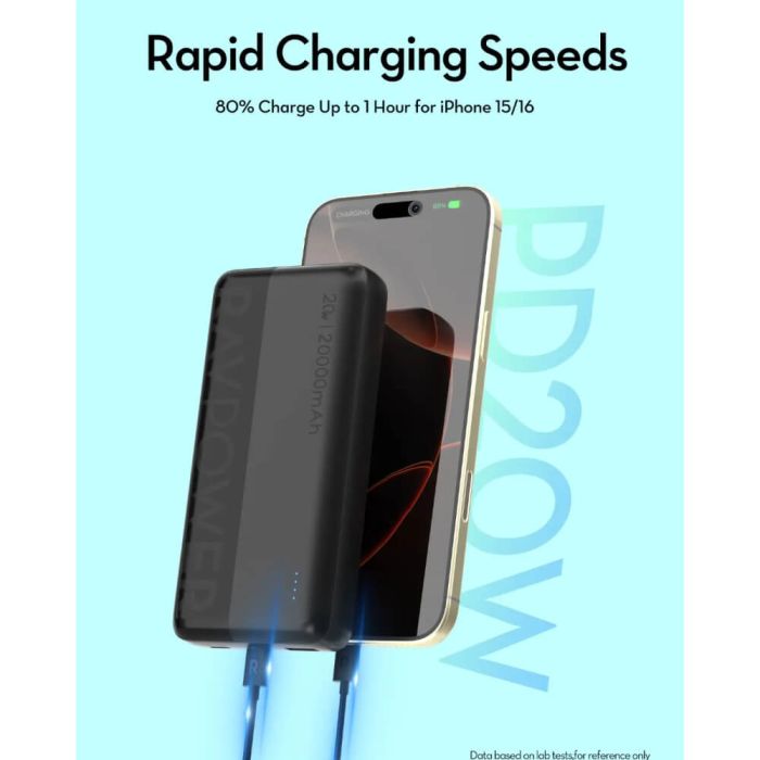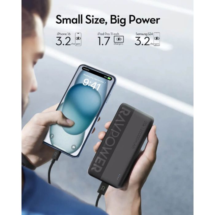 صفقة اليوم هي بطارية احتياطية 20000 مل أمبير شحن PD سريع 30 واط مع منفذ USB-A ومنفذين USB-C من RAVPower