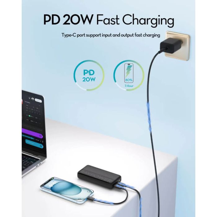 - شحن ثنائي الاتجاه عبر USB-C: مرونة فائقة في شحن الباور بانك والأجهزة الأخرى.