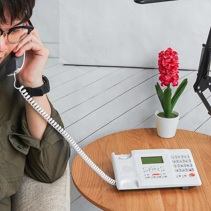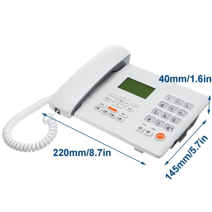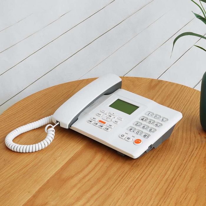 هاتف أرضي لاسلكي بشريحة SIM يمنحك اتصالاً موثوقاً في المنزل والمكتب والمناطق البعيدة. شاشة LCD واسعة تعرض الوقت والتاريخ وقوة الإشارة، مع ذاكرة 500 جهة اتصال ورسائل SMS وهاتف حر الأيدي، وبطارية قابلة للشحن تضمن استمرار الاتصال حتى عند انقطاع الكهرباء.