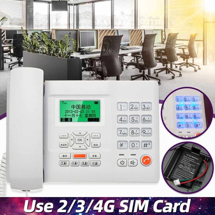 - هاتف أرضي لاسلكي بشريحة SIM وبطارية 2000 مل