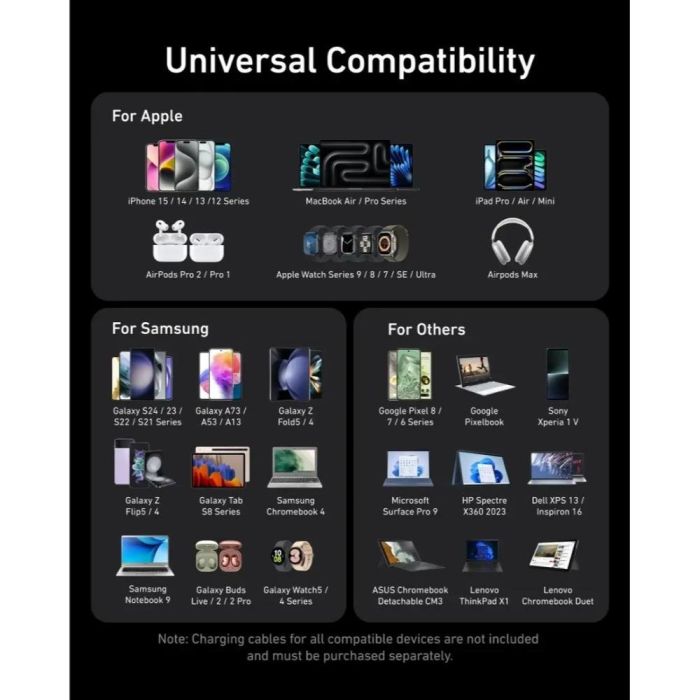 - يدعم أجهزة Apple، Galaxy، Pixel، Sony، Lenovo، Dell، Surface