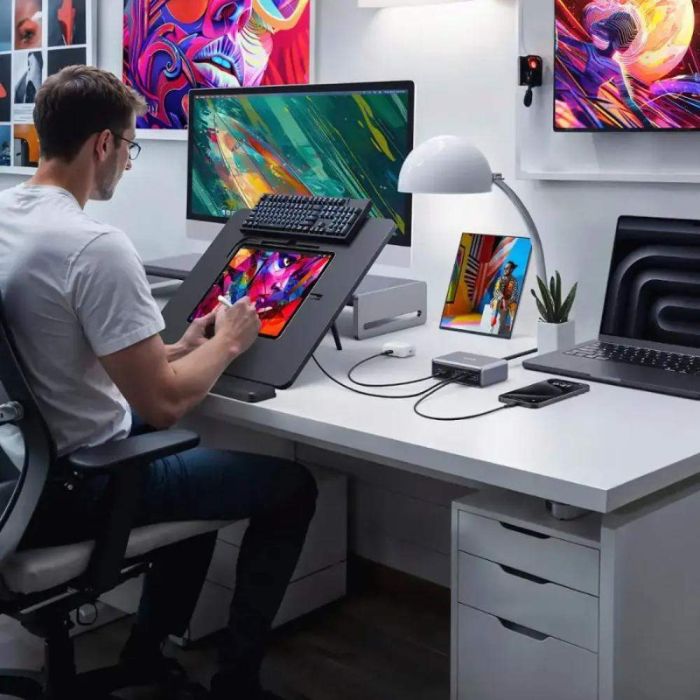- 4 مخارج USB-C، كل منها يدعم حتى 100 واط