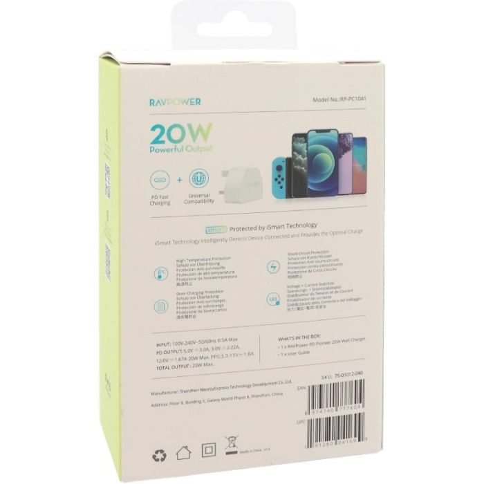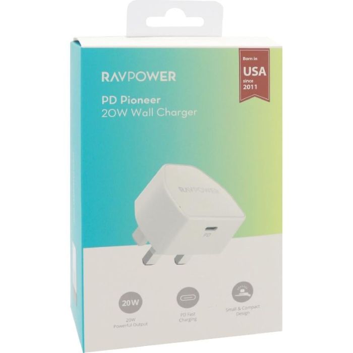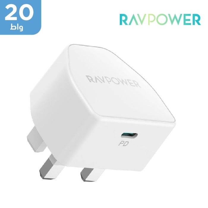 - شاحن حائط منفذ PD Type-C قوة 20 واط من RAVPower