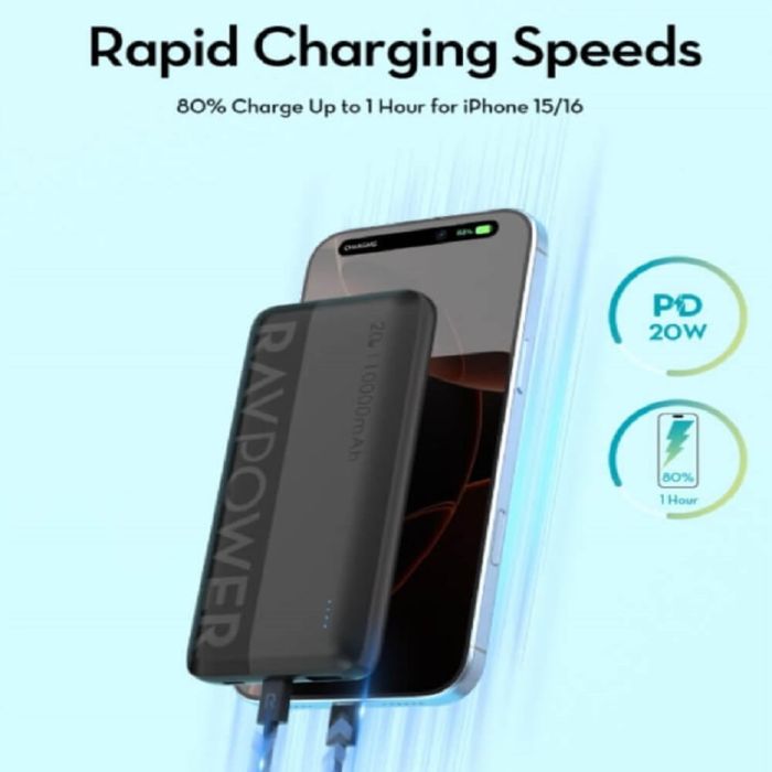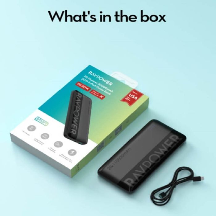 صفقة اليوم هي بطارية احتياطية 10000 مل أمبير شحن PD سريع 20 واط مع منفذ USB-A ومنفذين USB-C من RAVPower