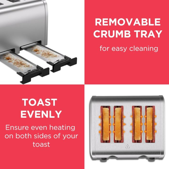 - 4 شرائح: تحميص 4 شرائح في وقت واحد، مثالية للعائلات
