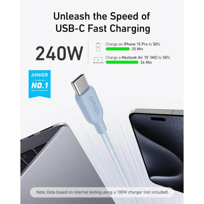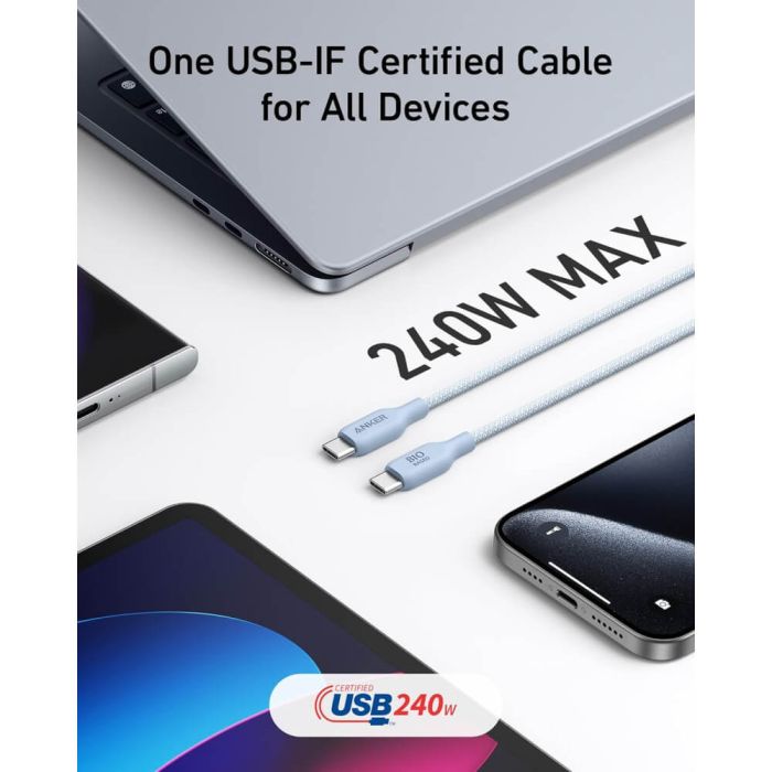 - كيبل USB-C إلى USB-C بقوة 240 واط طول 1.8 متر من Anker