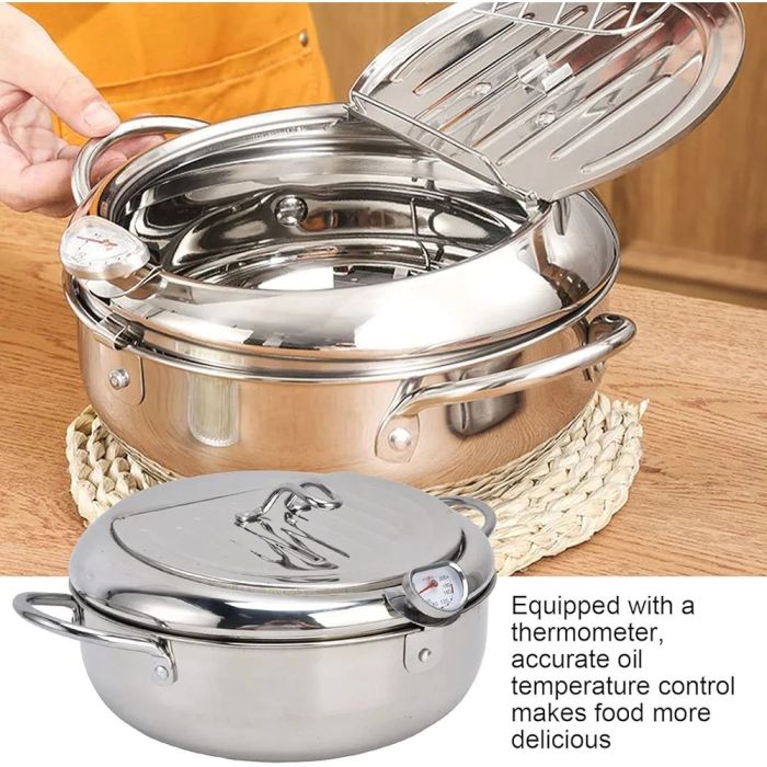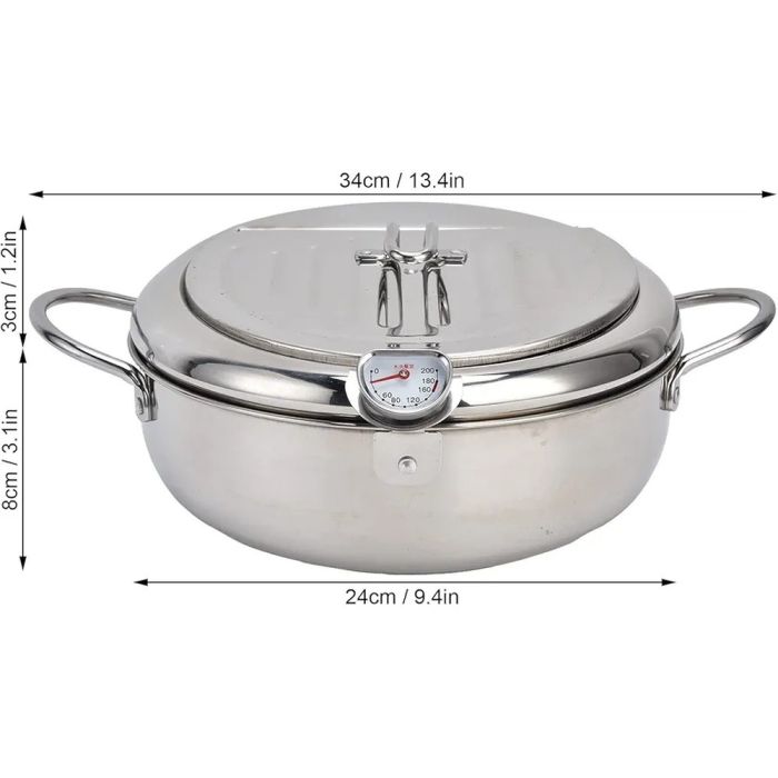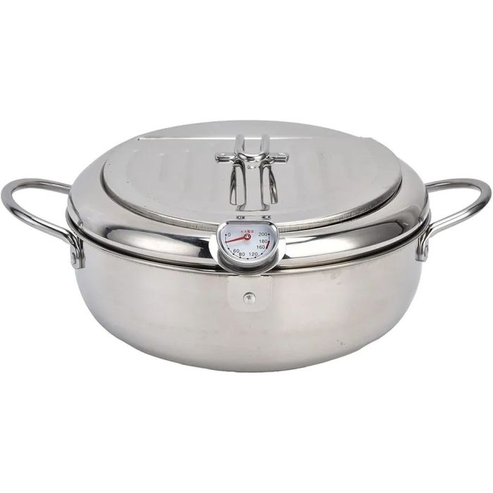 - مقلاة عميقة من الستانلس ستيل بترمومتر 24 سم