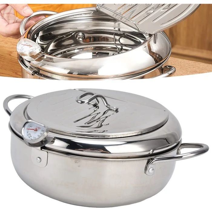 صفقة اليوم هي مقلاة عميقة من الستانلس ستيل بترمومتر 24 سم