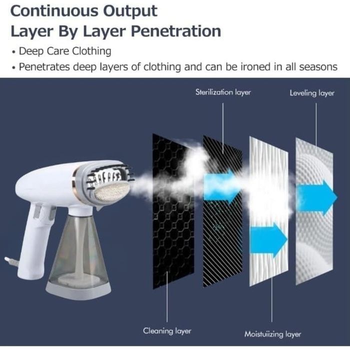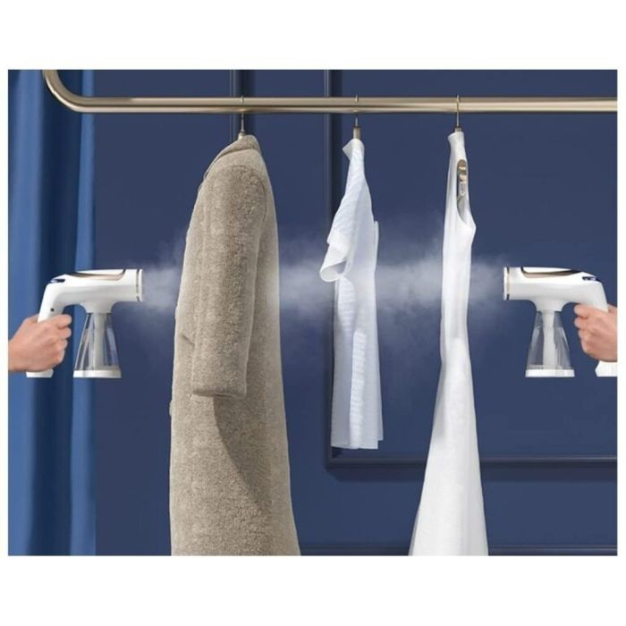 كواية بخار محمولة تجمع بين الكي بالبخار والكي الجاف. تسخين سريع خلال 40 ثانية وقدرة عالية لإزالة التجعدات بسهولة، بتصميم خفيف ومثالي للسفر والاستخدام اليومي على مختلف الأقمشة.
