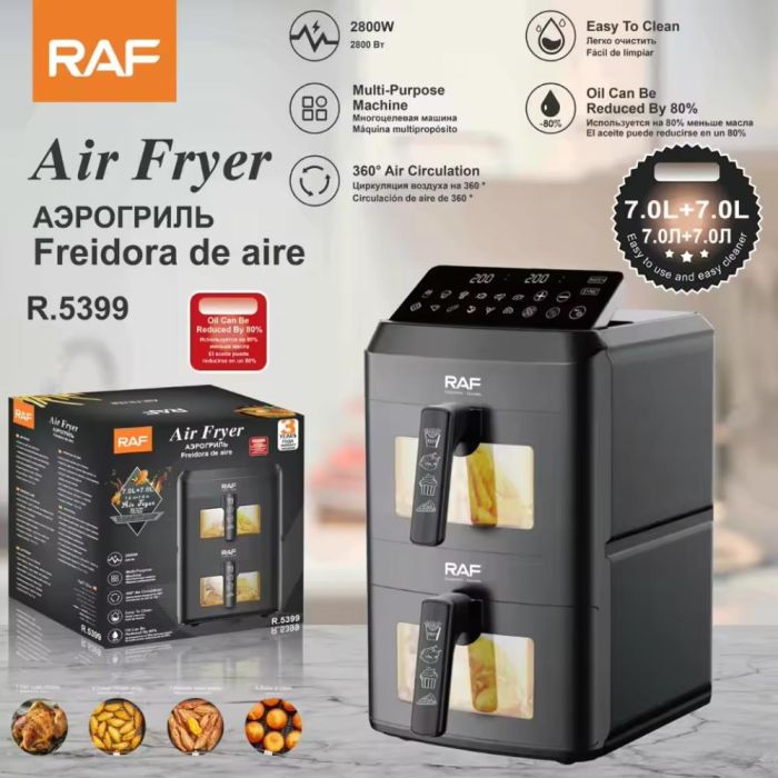 - قلاية هوائية ذكية مزدوجة 2800 واط (7 لتر + 7 لتر) من RAF