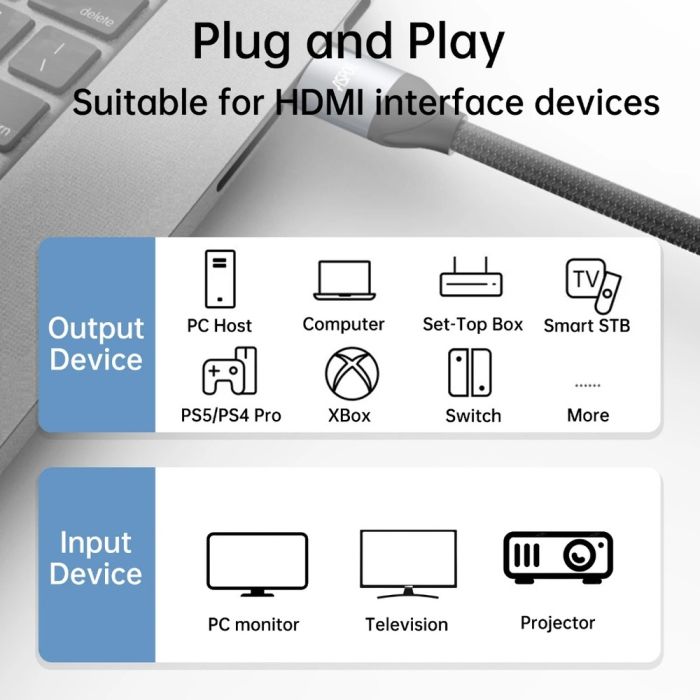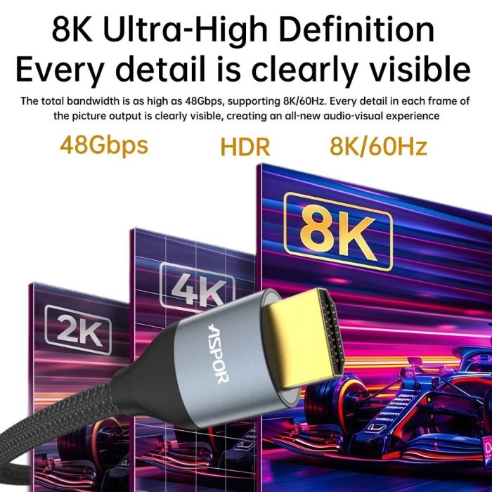 - كيبل HDMI إلى HDMI بدقة 8K بطول 2 متر من Aspor