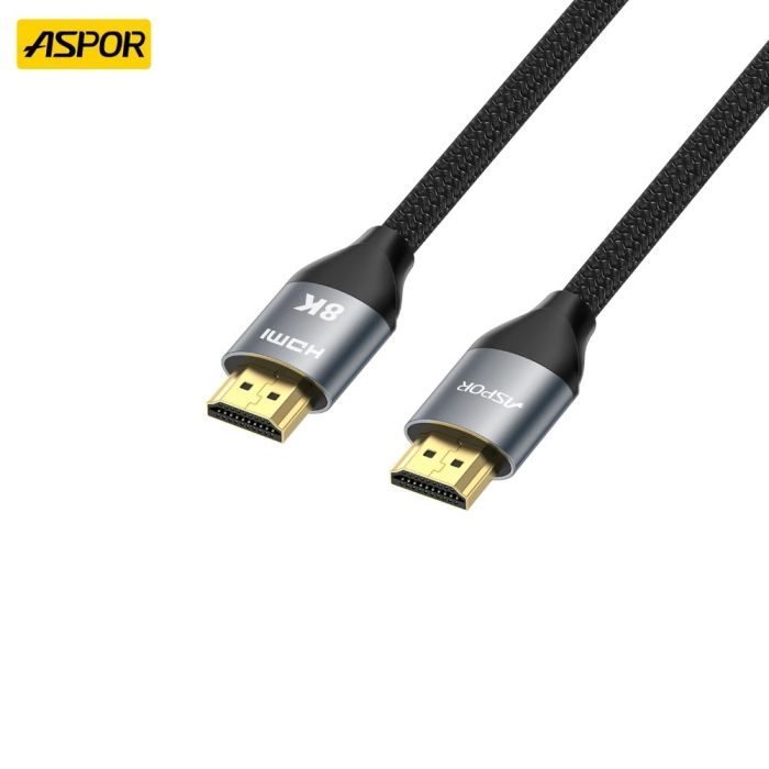 انقل الفيديو والصوت بأعلى جودة مع كيبل HDMI 8K من Aspor. بطول 2 متر، يوفر مرونة في التوصيل بين الأجهزة والشاشات الكبيرة، مع دعم كامل للفيديو عالي الوضوح والصوت الرقمي، لتجربة مشاهدة مذهلة وسلسة.