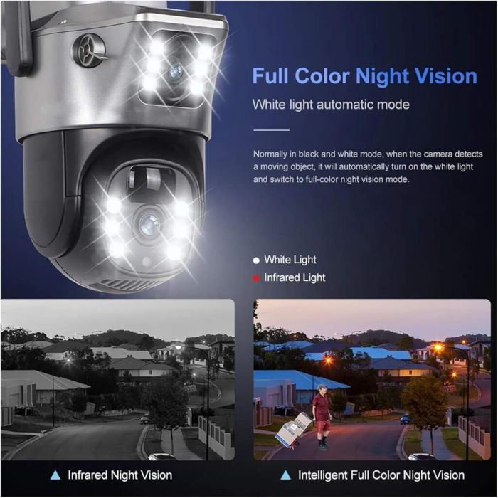 توفر هذه الكاميرا النقل الآمن للبيانات والصوت ثنائي الاتجاه وقدرات الرؤية الليلية، يمكنك مراقبة منزلك من أي مكان وفي أي وقت. فهي توفر صورًا ملونة واضحة حتى في ظروف الإضاءة المنخفضة، كما تعمل العدسة عالية الدقة على تقليل ضوضاء الجرافيك مما يضمن مرئيات واضحة