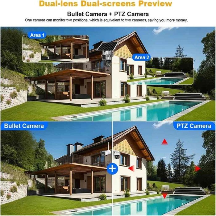 عزز أمان منزلك مع كاميرا المراقبة الذكية بالطاقة الشمسية من Hoco، فهي توفر دقة 2 ميجابكسل وجودة تصوير FHD بدقة 1080 بكسل لصور واضحة على مدار الساعة. تأتي الكاميرا مزودة بعدستين مع إضاءة بالأشعة تحت الحمراء والضوء الأبيض لرؤية واضحة حتى في الظلام، تدعم الكاميرا مع صوت ثنائي الاتجاه للتواصل المباشر، كشف الحركة مع تنبيهات فورية، جدولة التسجيل، وتنبيهات عند انقطاع الاتصال لضمان مراقبة مستمرة وموثوقة. بالإضافة إلى ذلك، يضمن تصميمها القابل للدوران بزاوية واسعة لتغطية شاملة لمحيط المكان