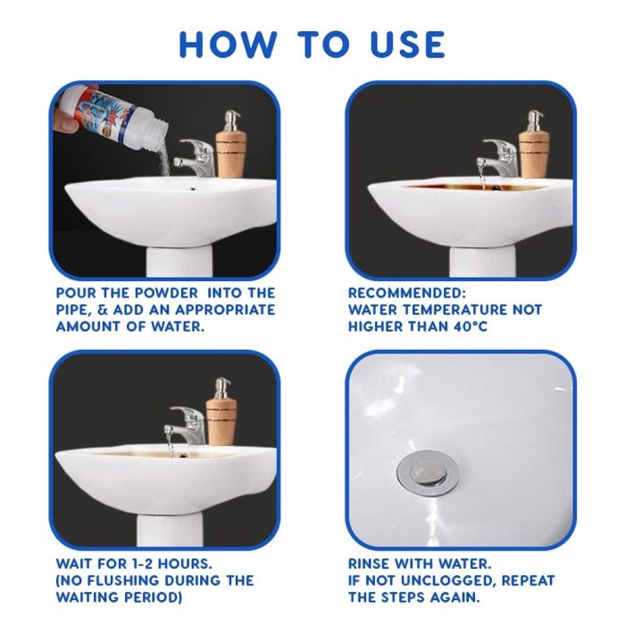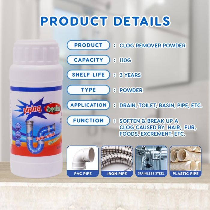 - مسحوق مخصص لإزالة انسداد الأحواض والمصارف والمراحيض