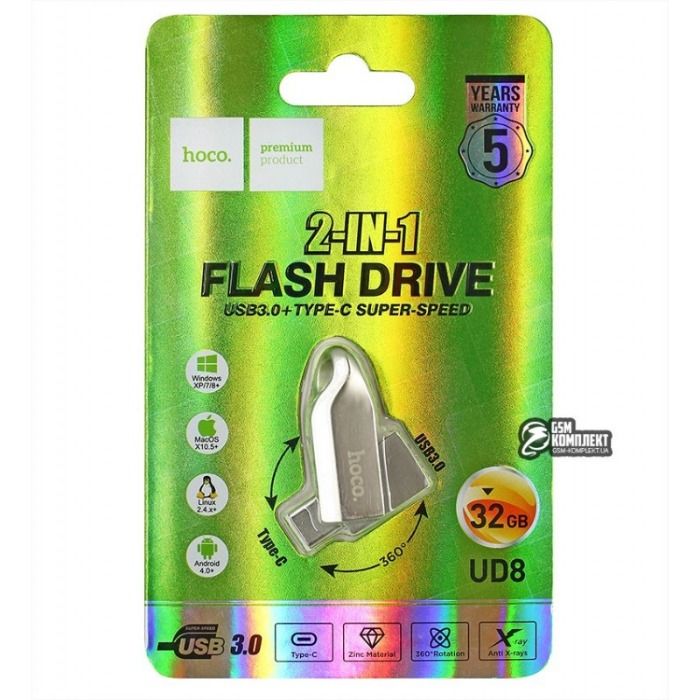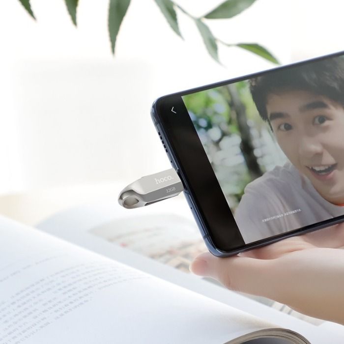 - ذاكرة خارجية ذكية 2×1 32 جيجا بمنفذين USB-A + Type-C من Hoco