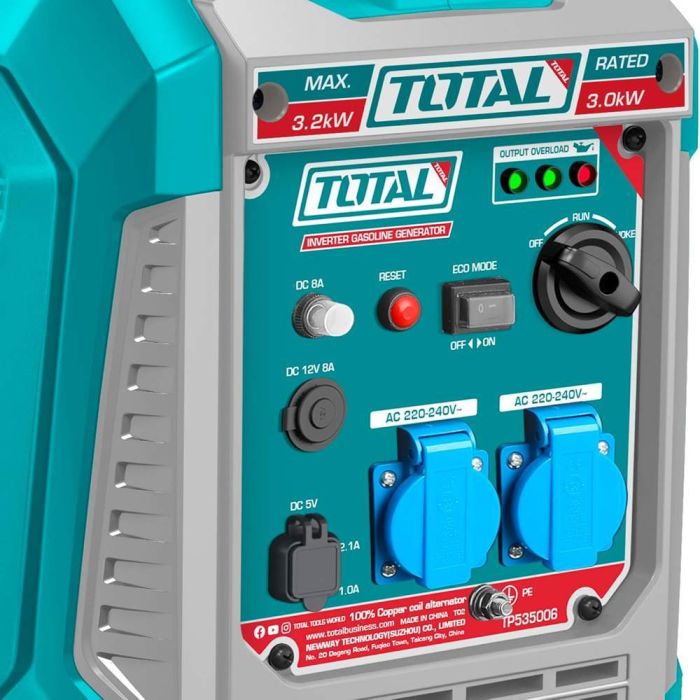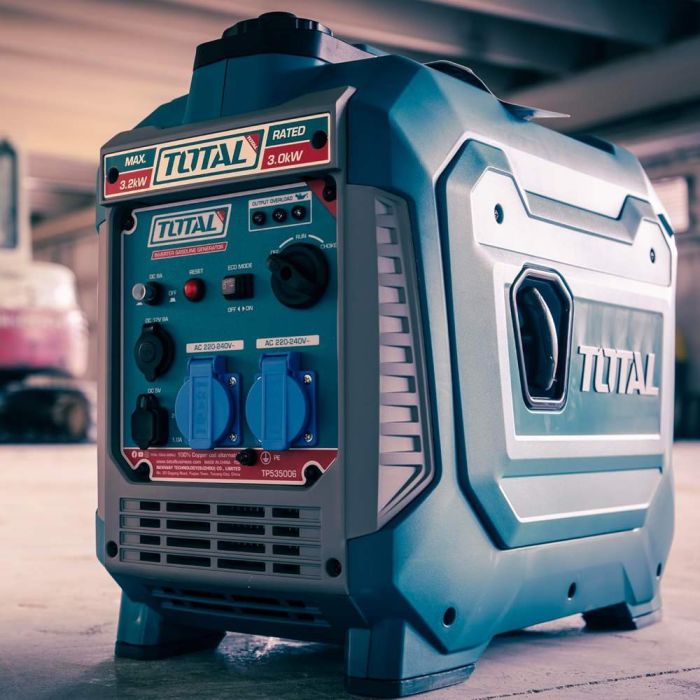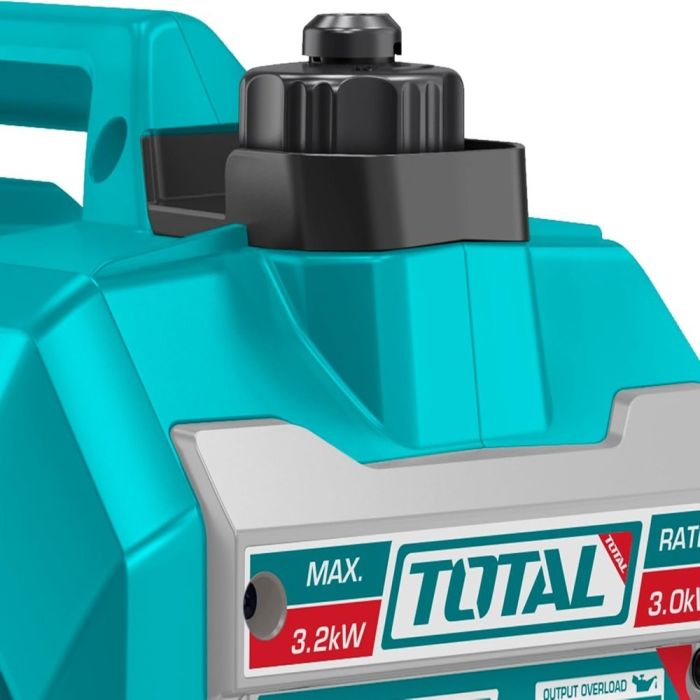 يوفر مولد TOTAL بتقنية Inverter طاقة ثابتة قوة 3.2 كيلو واط، مع ملف نحاسي 100% لتحقيق أقصى قدر من الكفاءة وعمر افتراضي أطول للمحرك، مزود بخزان وقود سعة 6.3 لتر، ويوفر ما يصل إلى 6 ساعات من التشغيل المتواصل