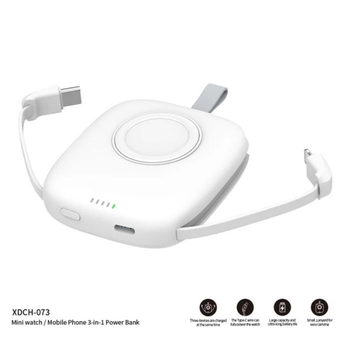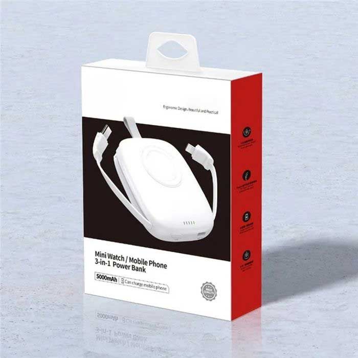 - بطارية ميني 5000 مل أمبير مع شاحن ساعة لاسلكي وكيبلات ثنائية مدمجة