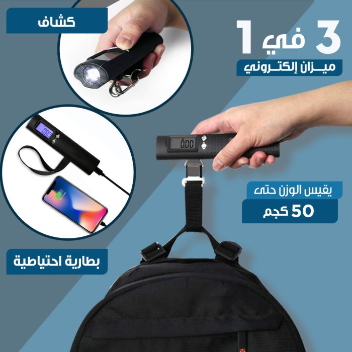 احصل على كل ما تحتاجه في جهاز واحد مع ميزان إلكتروني متعدد الوظائف، يقيس الأوزان حتى 50 كجم ومزود بشاشة LCD ديجتال، يأتي مصحوباً ببطارية احتياطية سعة 2600 مل أمبير ومصباح يدوي. سواء كنت في المنزل أو أثناء السفر، يوفر لك هذا الجهاز الراحة والكفاءة في كل خطوة. لا داعي للقلق بعد الآن بشأن وزن الأمتعة أو نفاد بطارية هاتفك، هذا الجهاز يغطي جميع احتياجاتك