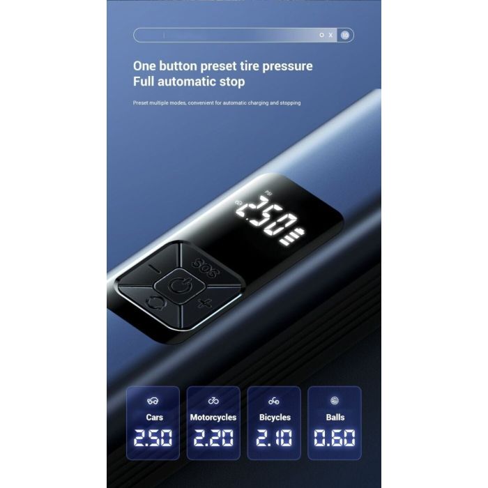 يمكنك تبديل وضع المضخة وفقاً للسيارة، الدراجة النارية، الدراجات، الكرات الرياضية، البالونات، المراتب الهوائية وغيرها من الأشياء الأخرى القابلة للتزود بالهواء