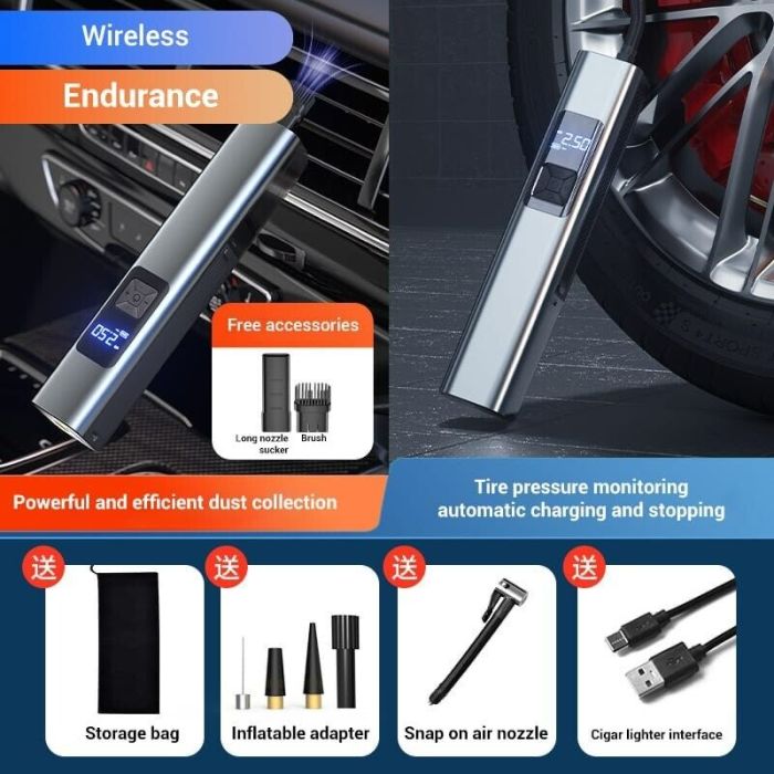 اجعل سيارتك جاهزة على الدوام، فهذه الأداة العملية تلبي جميع احتياجاتك، حيث تجمع بين مكنسة قوية ومضخة هواء للإطارات في جهاز مدمج واحد، مجهزة بكشاف LED لحالات الطوارئ، شاشة عرض ديجتال وأكثر...