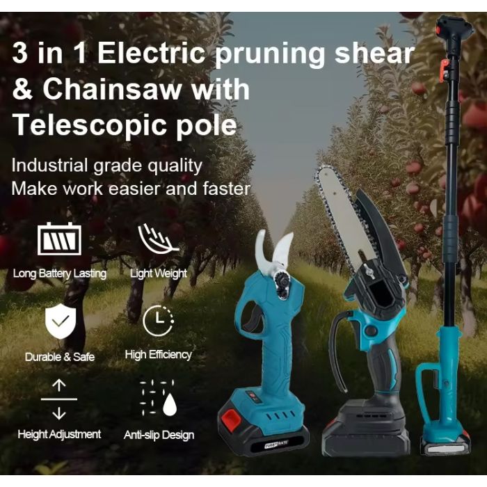 3 في 1 مقص تقليم كهربائي لاسلكي مع منشار كهربائي وعمود تلسكوبي