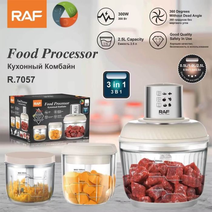 - محضرة طعام 300 واط 2.5 لتر مع مطحنة ومفرمة 3 في 1 من RAF