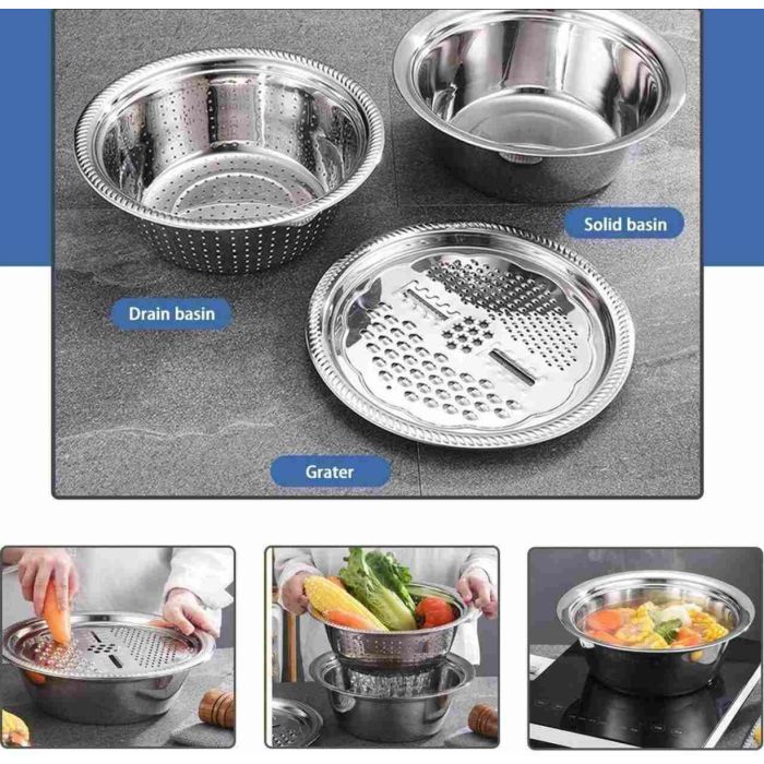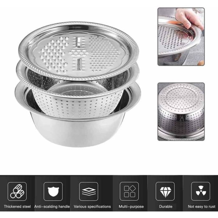 3 في 1 طقم وعاء ستانلس ستيل متعدد الوظائف مع مبشرة لتقطيع الخضار