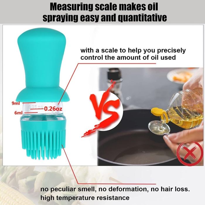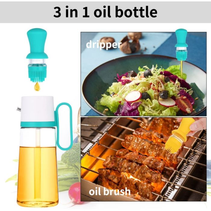 - زجاجة توزيع زيت 3 في 1 بفرشاة سيليكون 550 مل