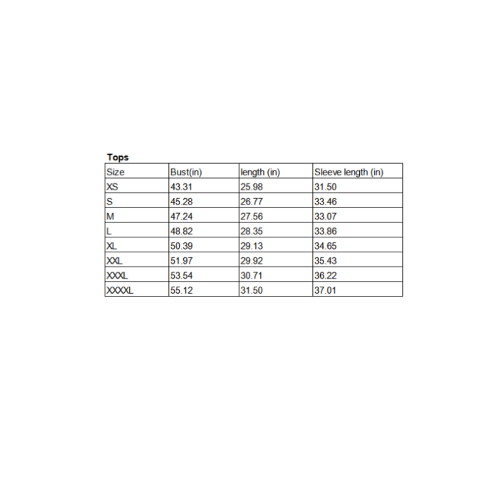 - متوفر بالمقاسات: S / M / L / XL / XXL / XXXL / 4XL