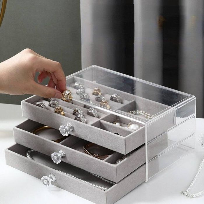 - صندوق منظم مجوهرات 3 طبقات مع غطاء أكريليك
