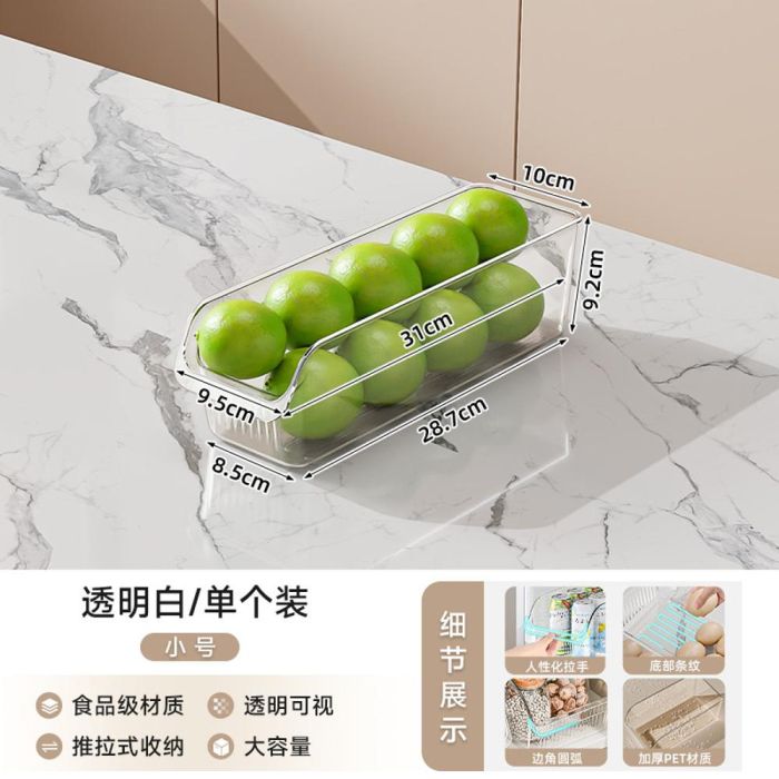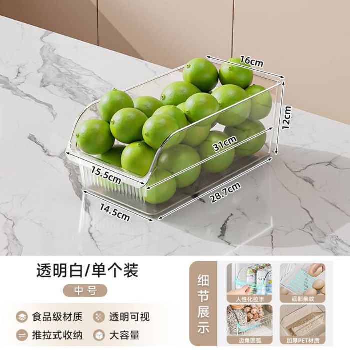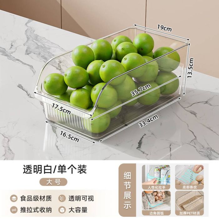 منظم بلاستيكي للثلاجة مصنوع من خامات آمنة للطعام، تصميم شفاف يسهل رؤية المحتوى، فتحة أمامية واسعة لسهولة السحب، مقبض مريح للاستخدام اليومي، يساعدك على ترتيب الثلاجة والحفاظ على الأطعمة بشكل منظم وأنيق