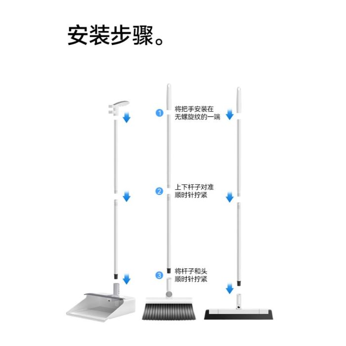 - يتميز بطقم ثلاثي يضم مكنسة شعيرات، ممسحة أرضيات، ومجرفة لتنظيف متكامل