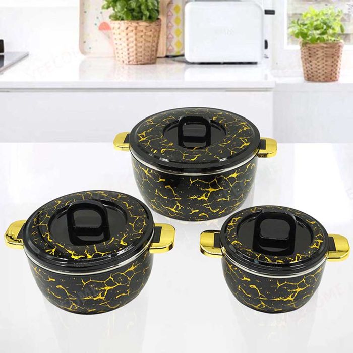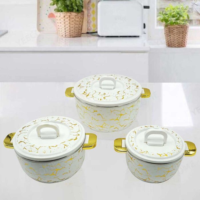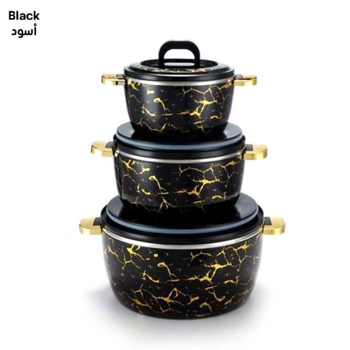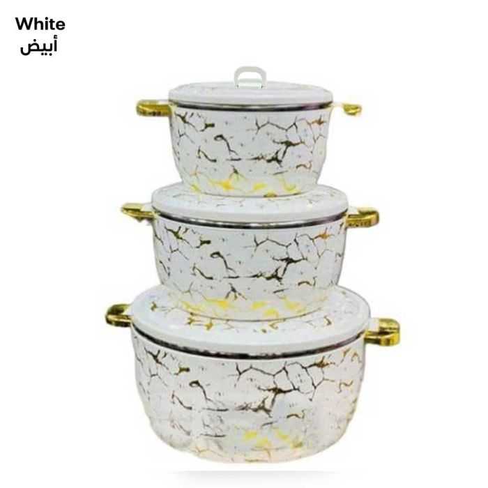 - طقم طاجن حراري من 3 قطع مع أغطية، وعاء معزول من الفولاذ المقاوم للصدأ للأطعمة الساخنة والباردة، وعاء تقديم لحفلات البوفيه - أواني رخامية ساخنة