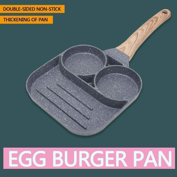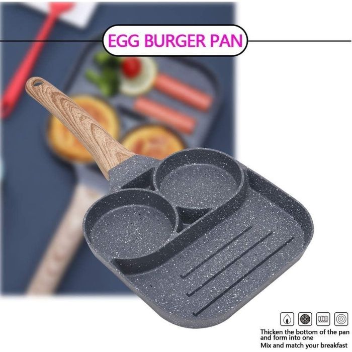 - مقلاة غير لاصقة 3 أقسام بمقبض خشبي