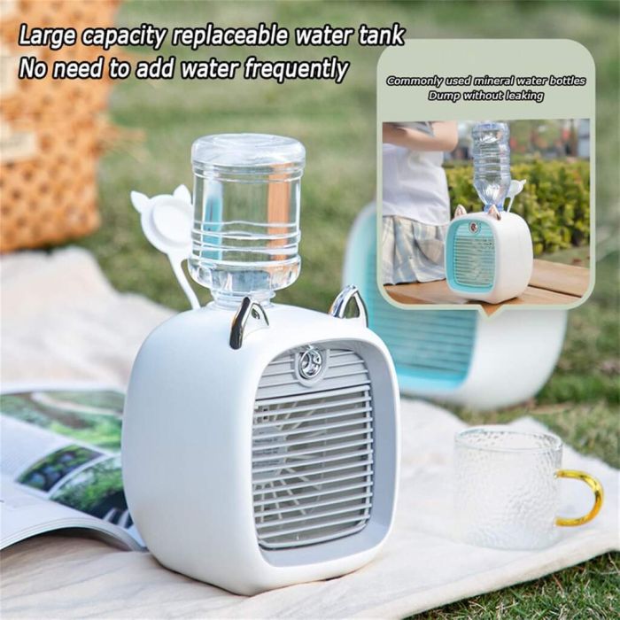 اجمع بين التهوية والترطيب في جهاز واحد أنيق! مروحة ميني صغيرة الحجم توفر 3 سرعات للتبريد مع خاصية الرذاذ، كما أن تشغيلها هادئ لتوفر لك راحة مثالية أثناء العمل أو الاسترخاء. مع بطارية قوية تدوم حتى 6 ساعات بشحنة واحدة