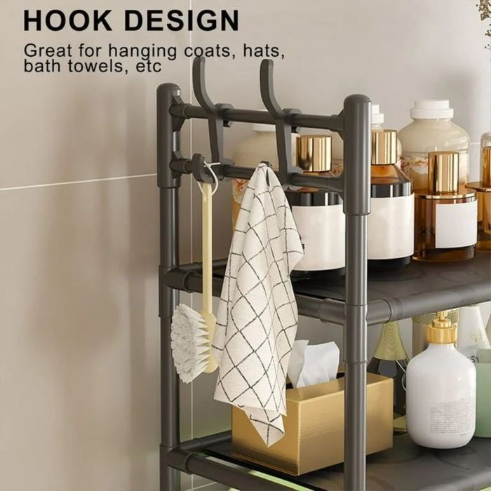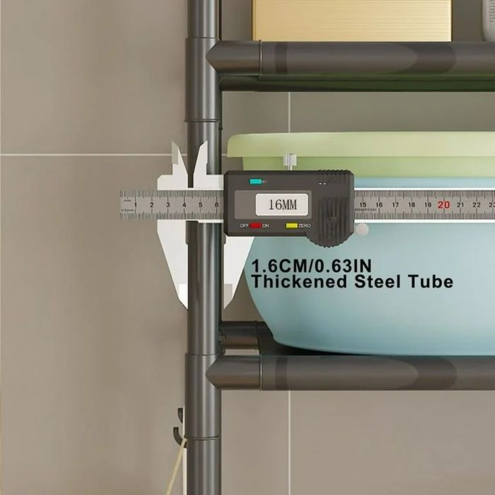 استغل مساحة غرفة غسيلك بأناقة مع رف الغسالات القابل للتعديل بثلاث طبقات، المصمم لتنظيم وتبسيط روتينك اليومي. بفضل هيكله الأنيق والموفر للمساحة، يتناسب هذا الرف بشكل أنيق مع معظم الغسالات أو المراحيض القياسية، مما يحول المساحة الرأسية غير المستخدمة إلى مساحة تخزين ذكية.