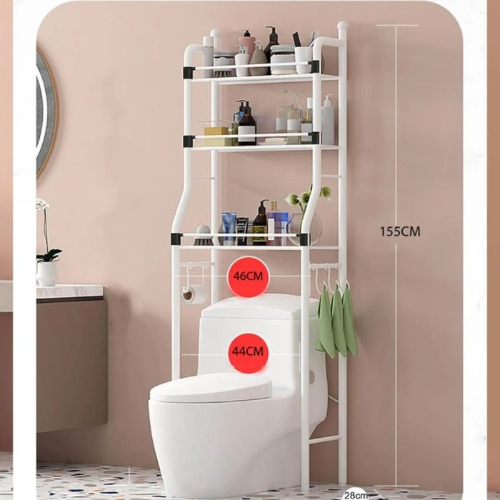 رف منظم حمام معدني متعدد الطبقات يوفر مساحة تخزين عملية فوق المرحاض، يساعدك على ترتيب مستلزماتك بسهولة مع تصميم موفر للمساحة وهيكل قوي مناسب للاستخدام اليومي في الحمام أو أي مكان بالمنزل.