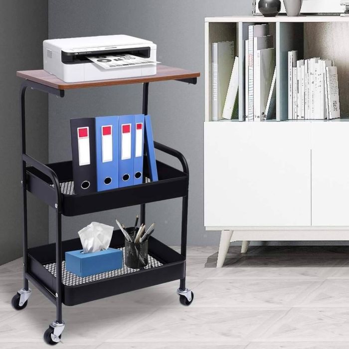 حل منظم لتوسيع مساحة التخزين في مكتبك أو منزلك، فهذه الطاولة تمنحك استغلالًا ذكيًا للمساحة الرأسية مع سهولة حركة كاملة بفضل العجلات الدوارة. توفر ثباتًا قويًا لتحمل الأجهزة والملفات، مع تصميم آمن وسلال شبكية تحافظ على التهوية